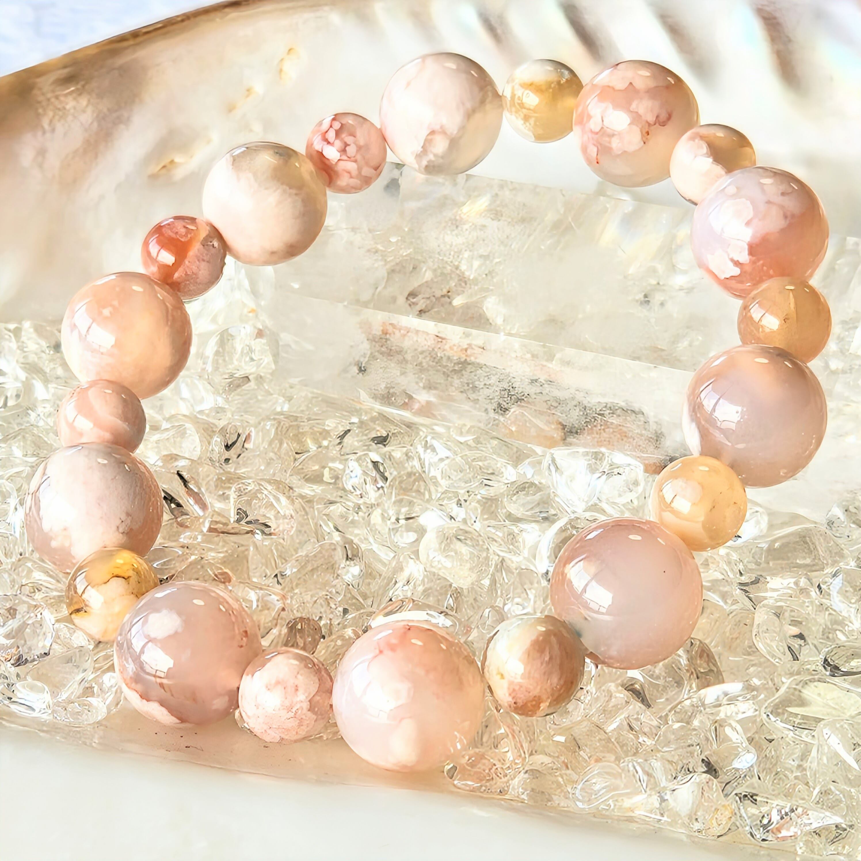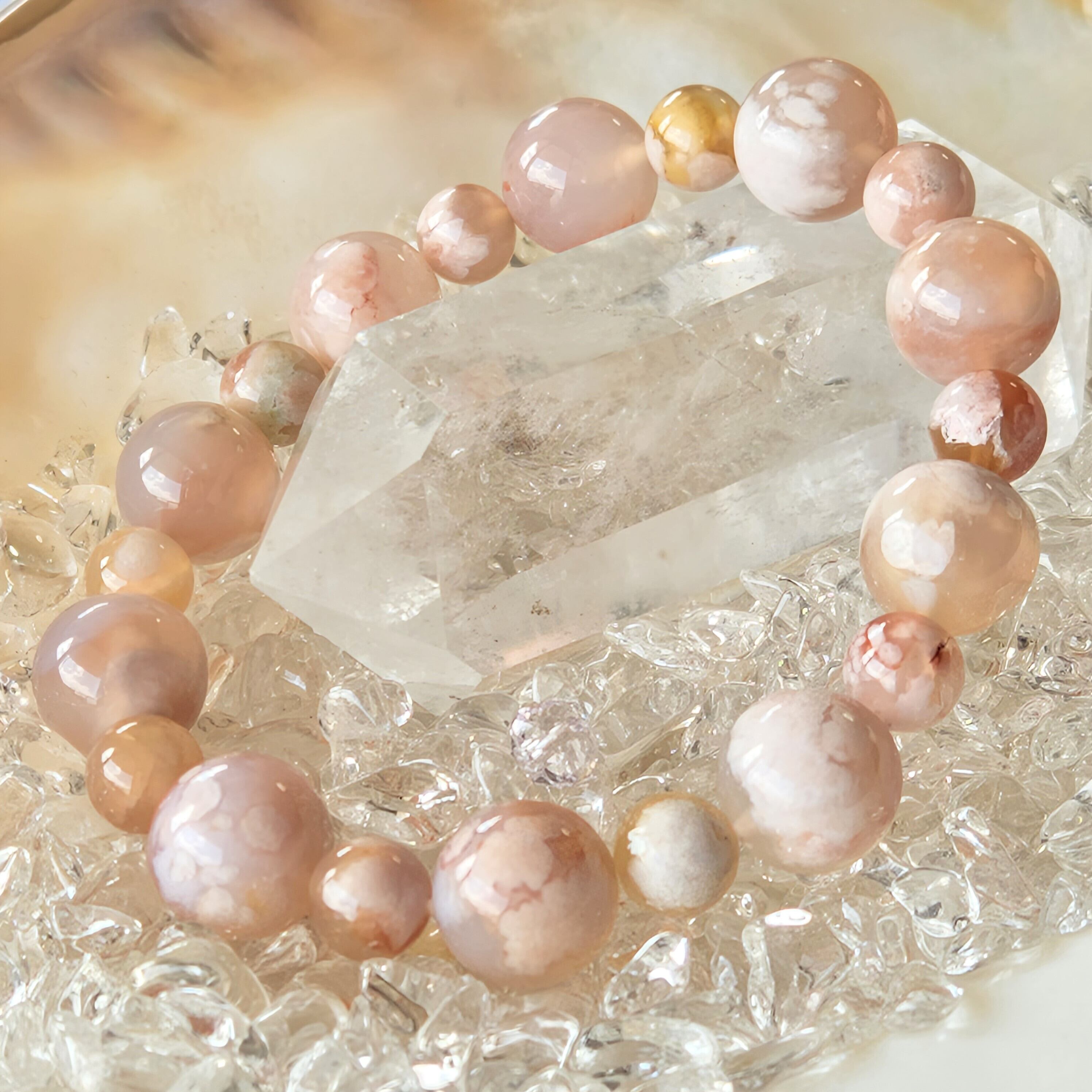 2019年に初めてブロッサミングクリスタルを御紹介した桜瑪瑙(マダガスカル産)のブレスレットです。